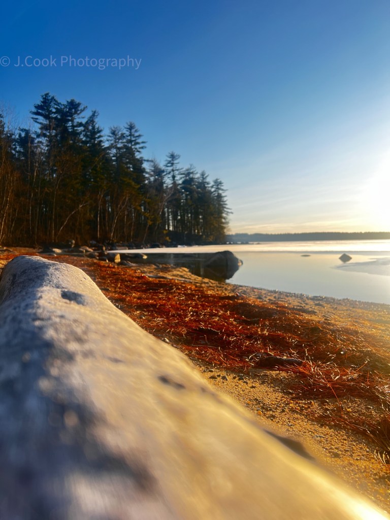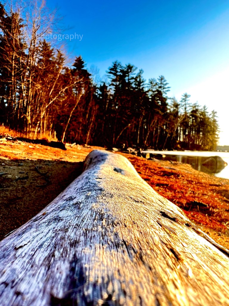 On a recent late afternoon, as the sun was lowering towards the horizon, I stopped at a local lake. I came upon this log, which was a natural subject for some photos. These two are my favorites.