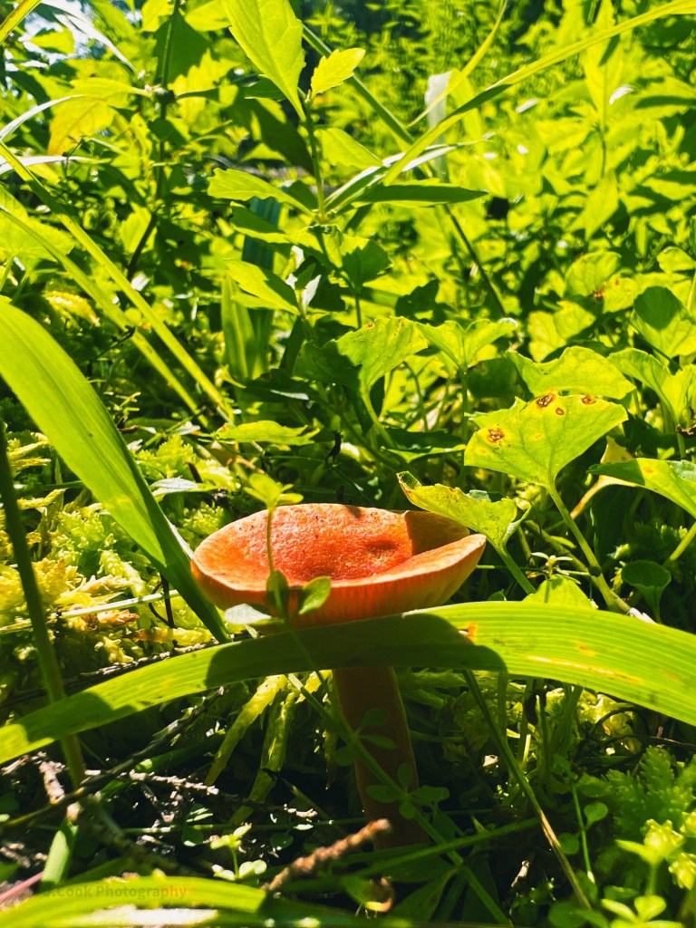 A few weeks ago, on a walk through the woods of Western Maine, I came upon this little mushroom, Tricholomopsis rutilans, commonly known as Plums and Custard or Red-haired Agaric, sitting among a field of green.