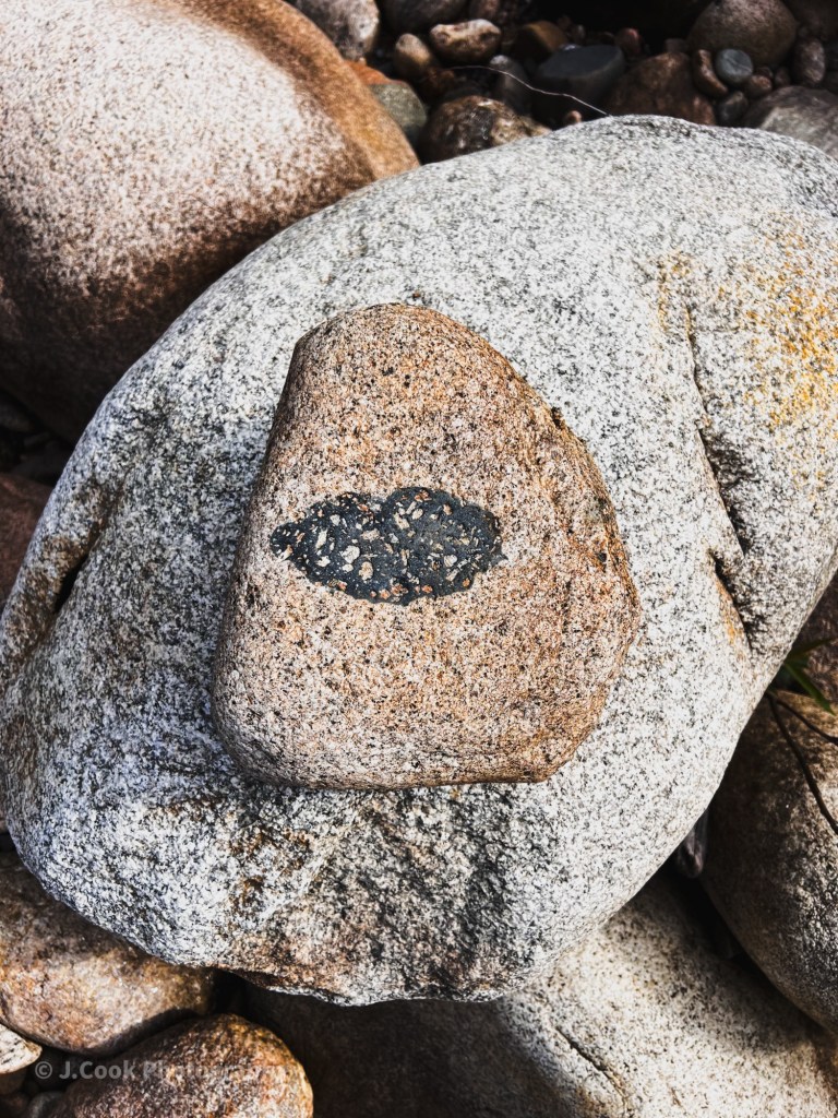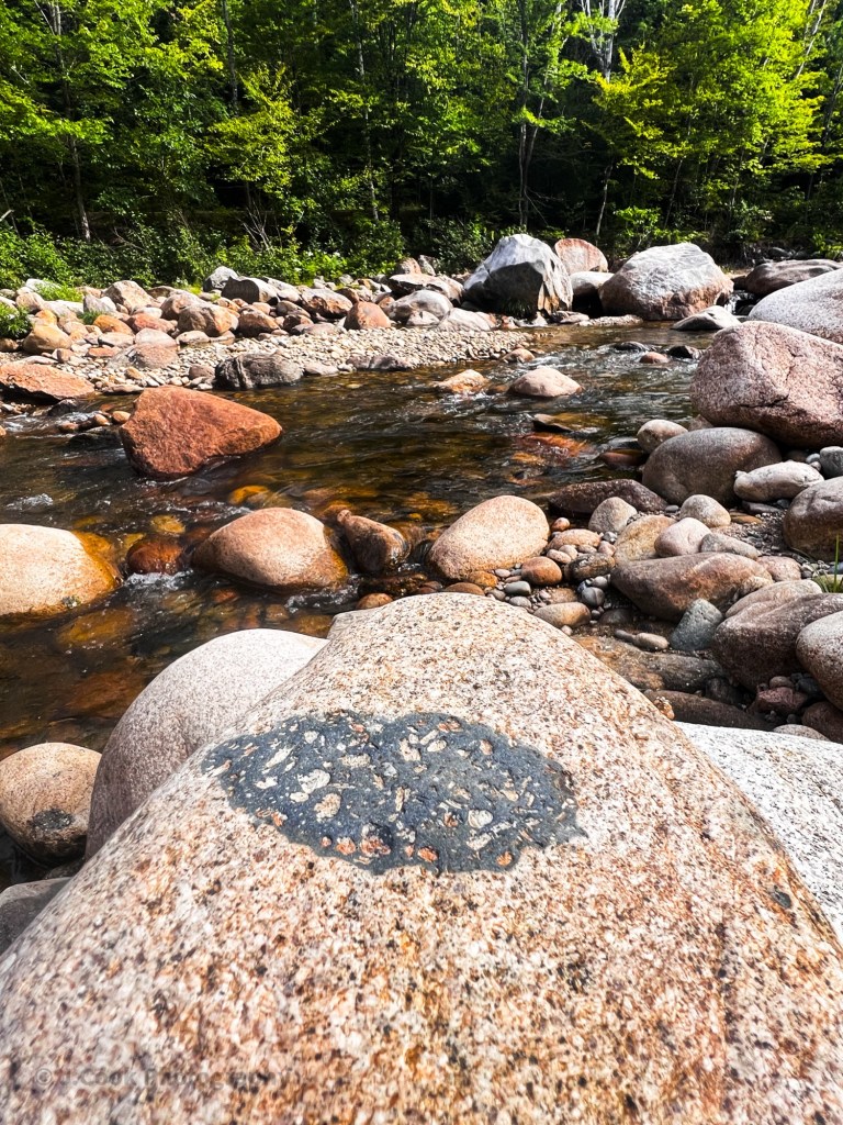 As we made our way along the river, we came across many rocks, boulders, both big and small. This one stood out to us. Now, I’m no expert on geology, but a little online research leads me in the direction that this is a xenolith feature.