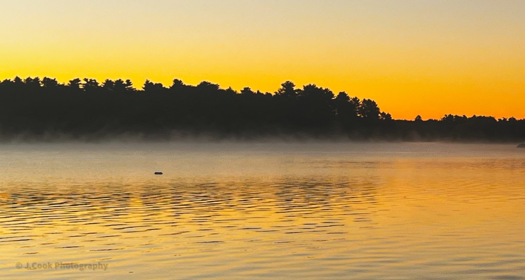The fog slowly rolling across the lake.