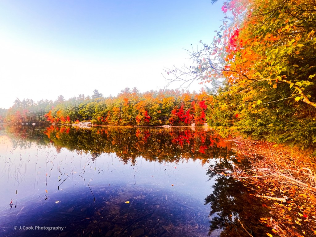 1. Very nice indeed I love the contrast between the colors of the trees and the blues of the pond water. A peaceful setting. 🙏