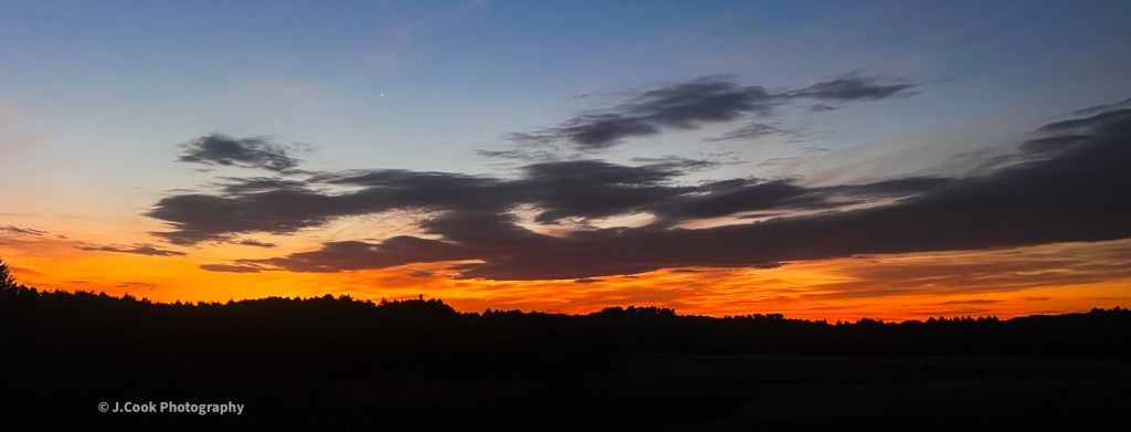 The sunrise seen from a dirt road in Windham, Maine.
