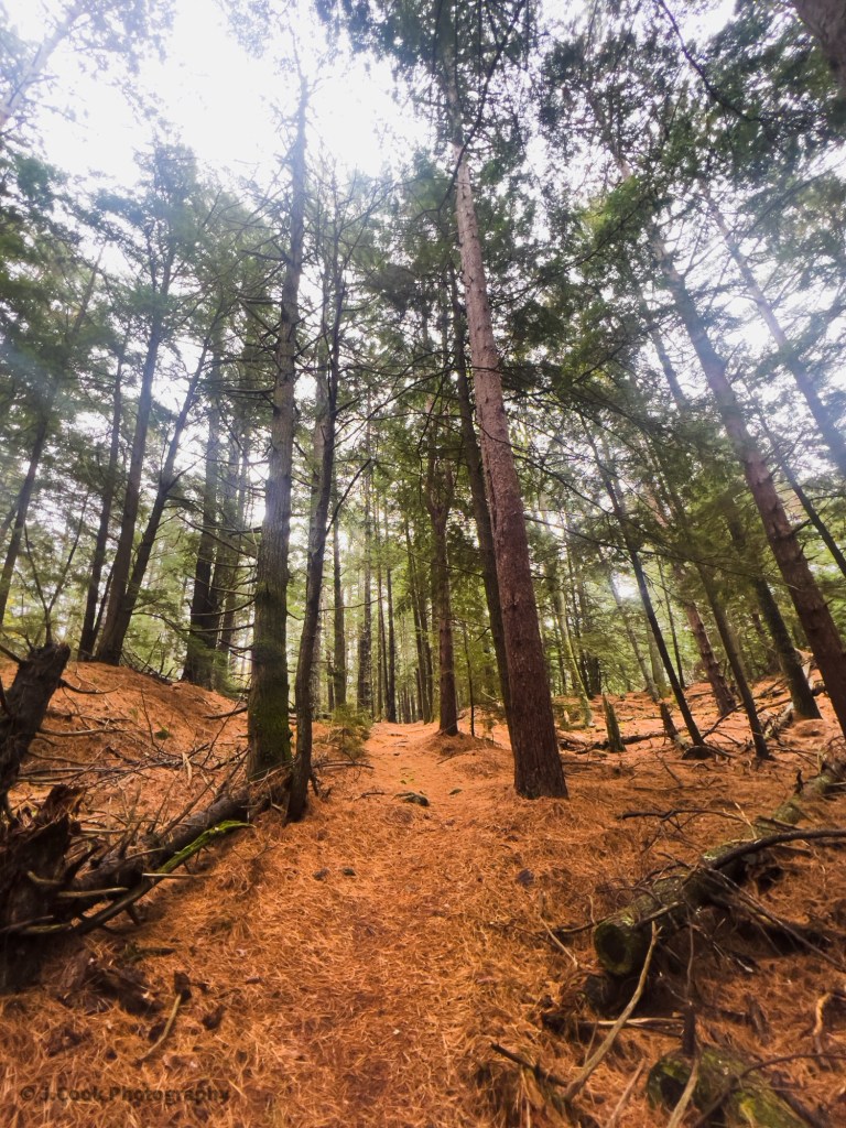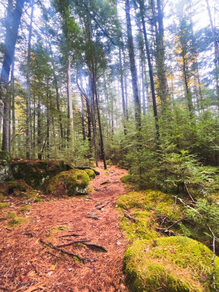 I had hopped for a hike of the Camden Hills, but a forecast of torrential rain caused me to seek a different path.  Fernald’s Neck Preserve did not disappoint.  I hiked the white and blue trails, passing by the lake in several spots and encountering various forest types along the way, definitely a place I would recommend and return to.
