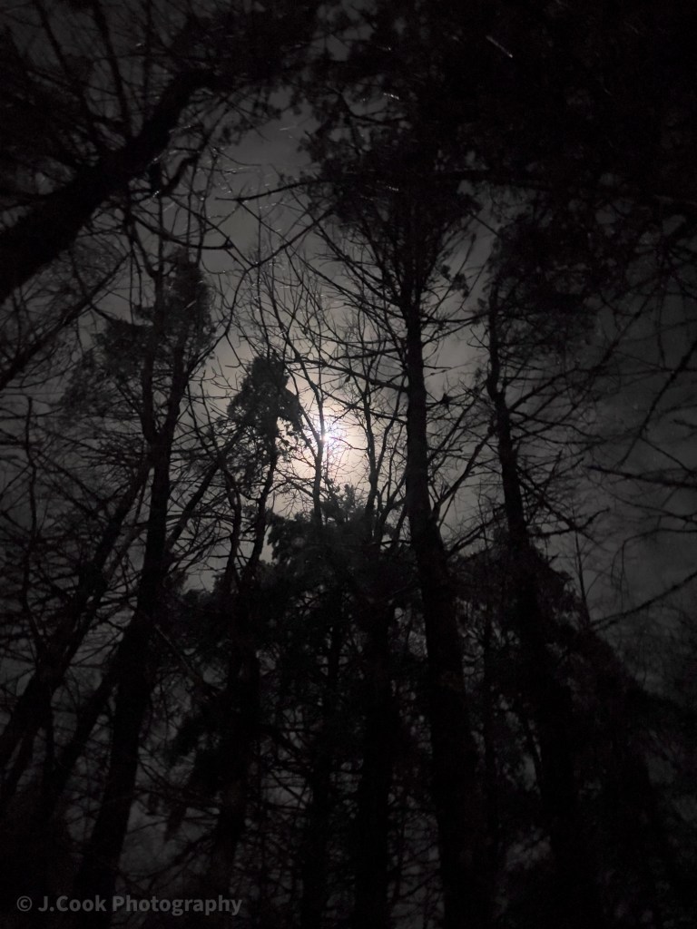 The stillness after a day of freezing rain, before the winds. Walking through the woods with the moon following above. Everything is quiet except for the crunch of my boots on the snow and ice along the path. It’s like walking in a world of black and white, as the trees have become silhouettes surrounded by the snow. Eerie, let peaceful. This walk allows my thoughts to flow, to slow, as the end of this day approaches. Peace in the woods.