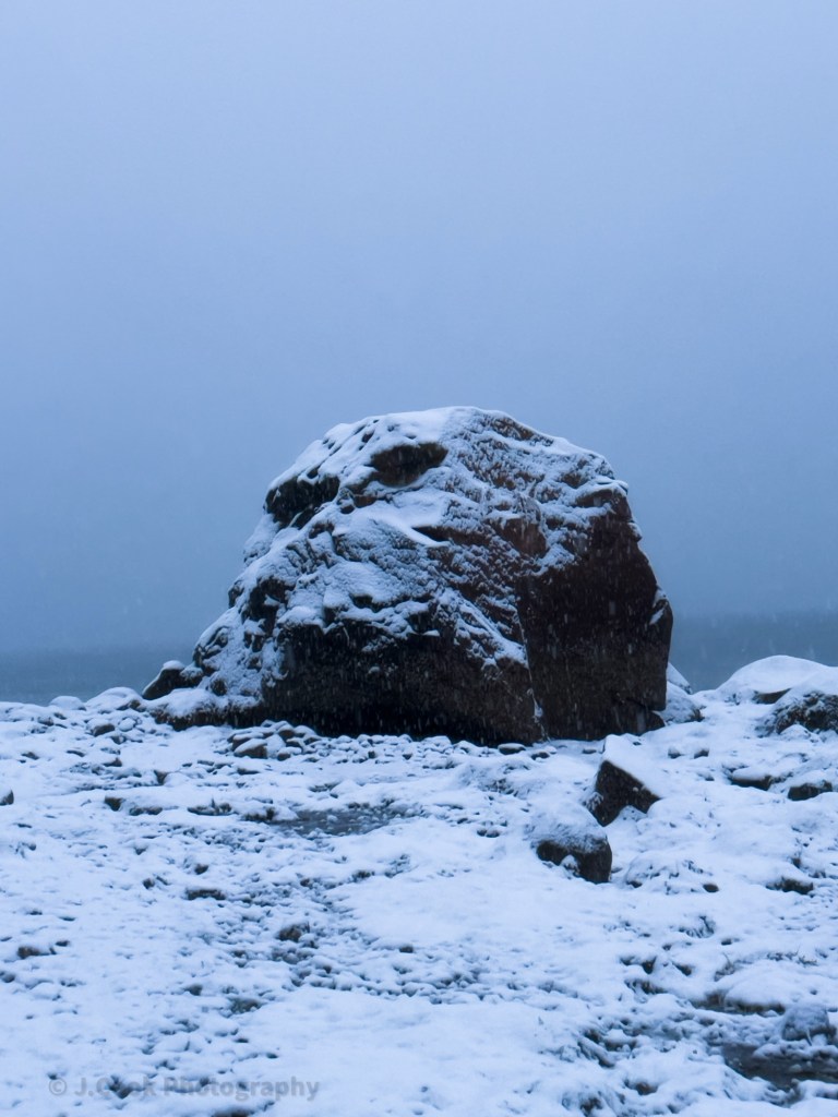 What a little bit of snow can do. Both photos taken on the same day, hours apart. I like the contrast the snow brings to this rock, bring it to life.