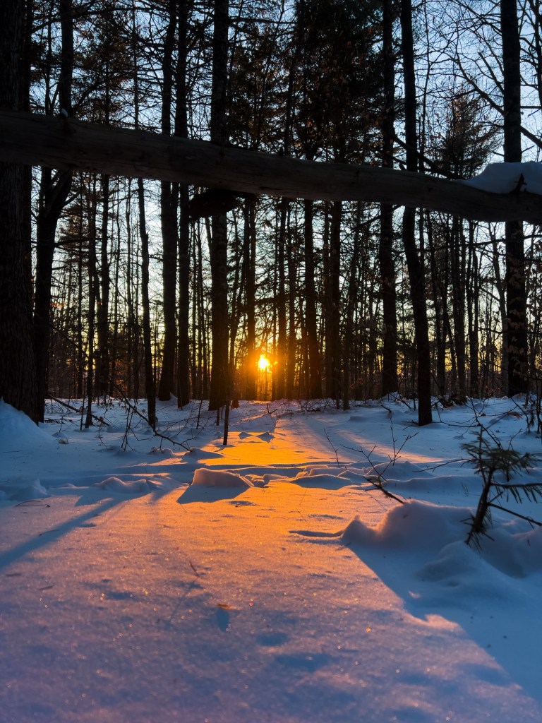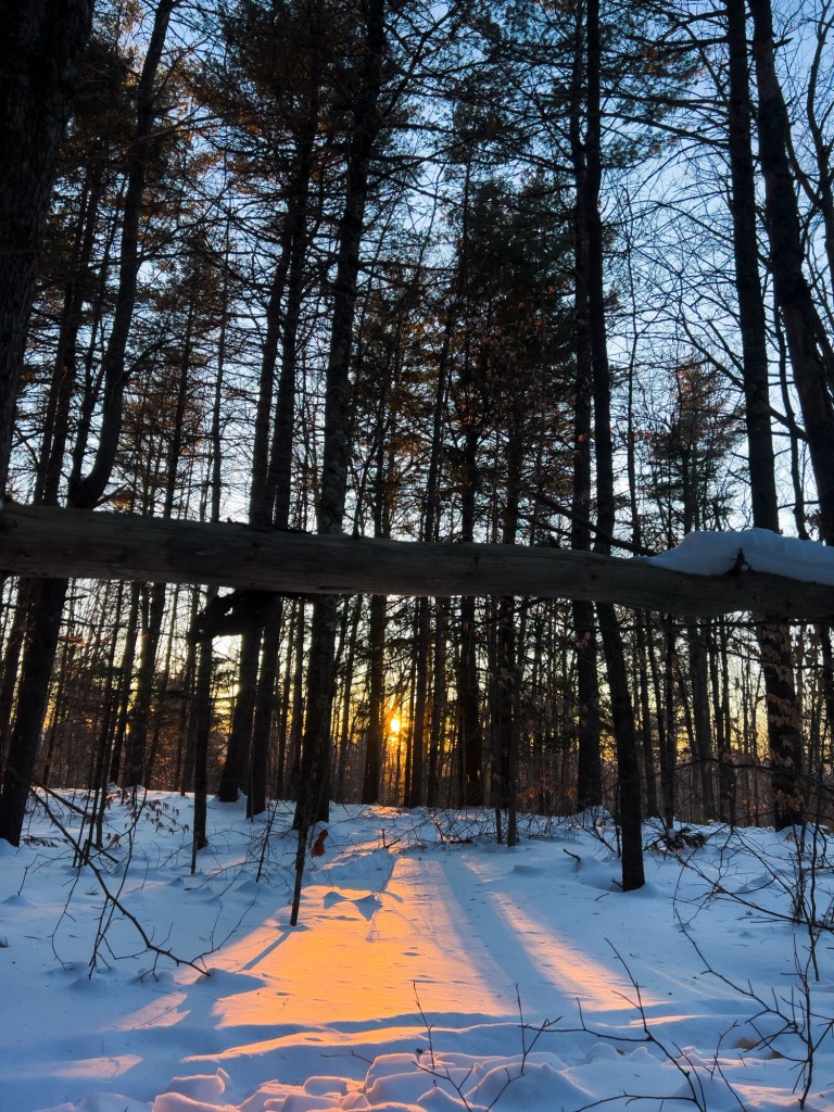 Late afternoon snowshoeing as the sun went down. As I was in the woods, only me and the dogs, a passage from the book The God of Wild Places by Tony Jones came to mind –