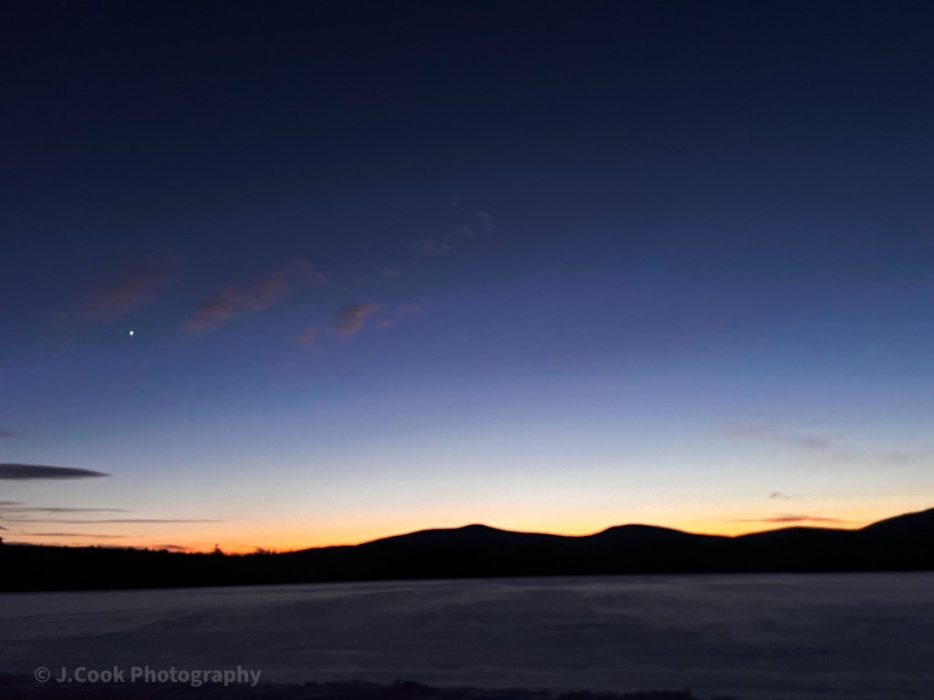 Night has almost completed its takeover of the skies over Fryeburg as the sun sets over the White Mountains, a romantic scene as the two shades of light contrast with each other.