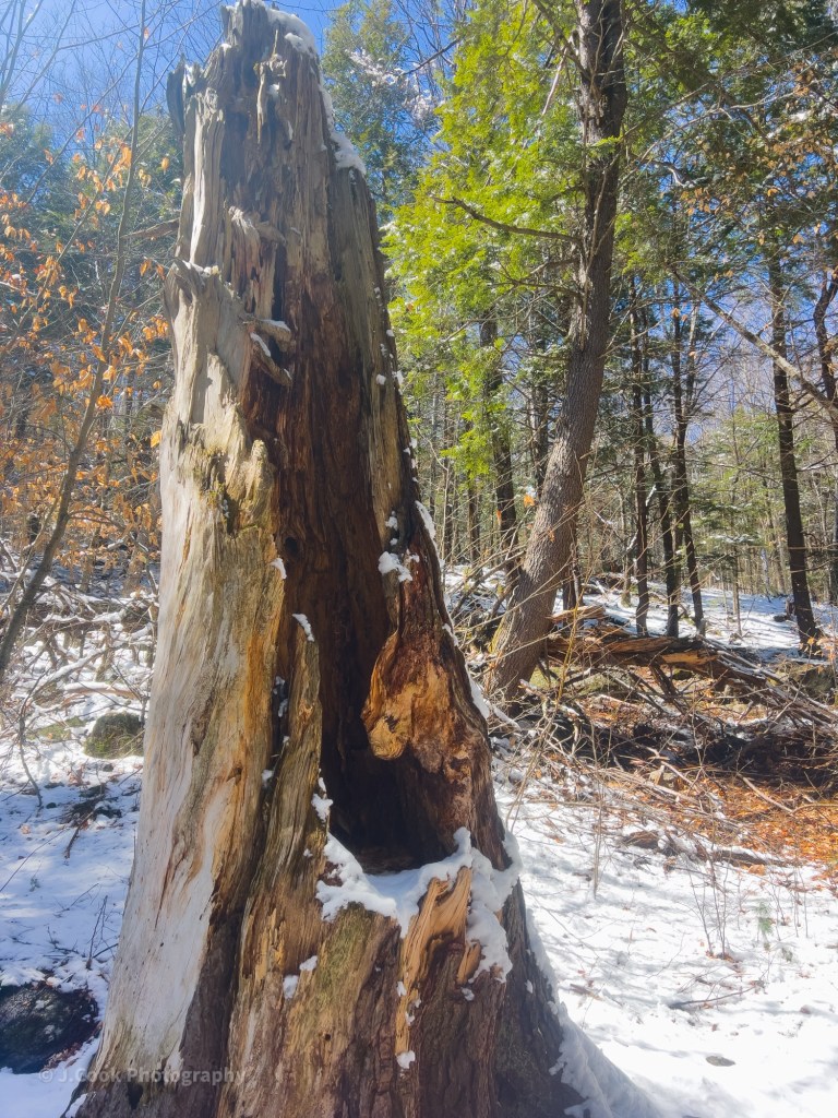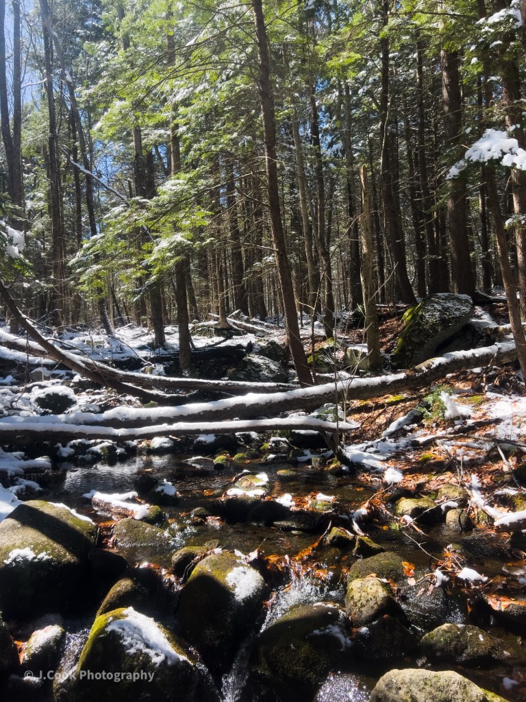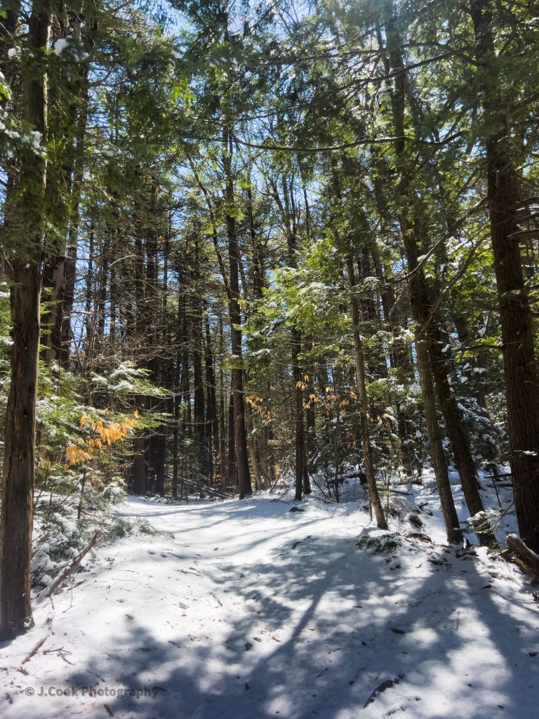 I continue my circular trek heading down the Ledges Trail. As I expected, there were a few tricky spots to get through due to snow-covered ledges, but with patience and a low center of gravity, the trail was doable.